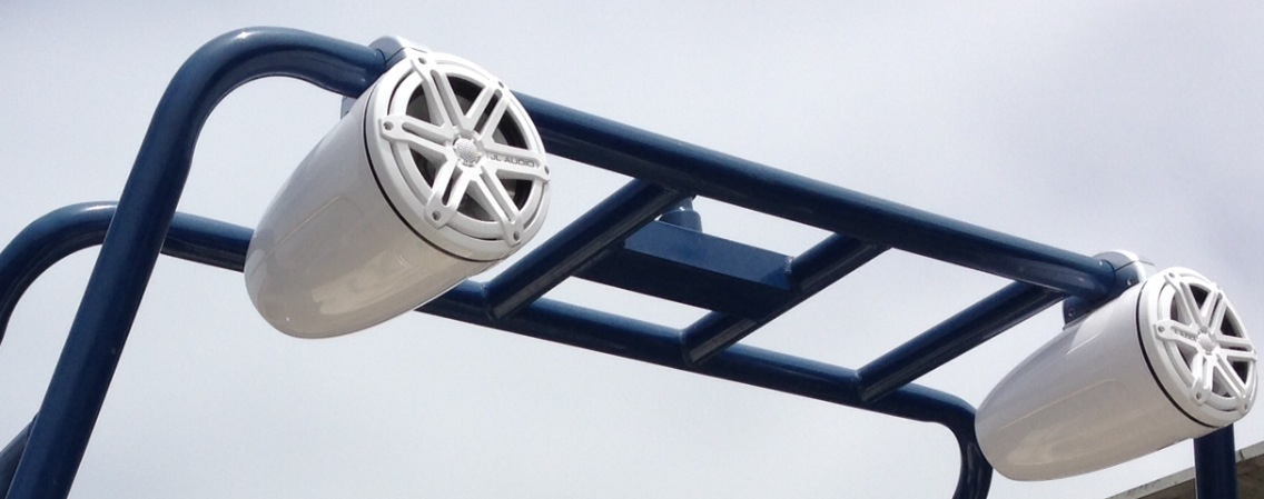 Add marine-grade speakers from JL Audio or Alpine. And make it loud with the addition of an amplifier or two.